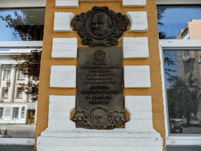 С недавнего времени муниципальные власти города потихоньку начинают размещать маленькие модели исторических домов с авторством известных архитекторов у дома-оригинала. Те же заинтересованные люди могут подойти к модели и прочесть о ней интересную информацию. Это очень ненавязчивое углубление людей в историю их города, историю достопримечательностей. Черкасская детская художественная школа имени Данила Нарбута самая первая вошла в число этих архитектурных объектов. Первая причина почему – это авторство Городецкого, как уже было указано в пунктах выше.