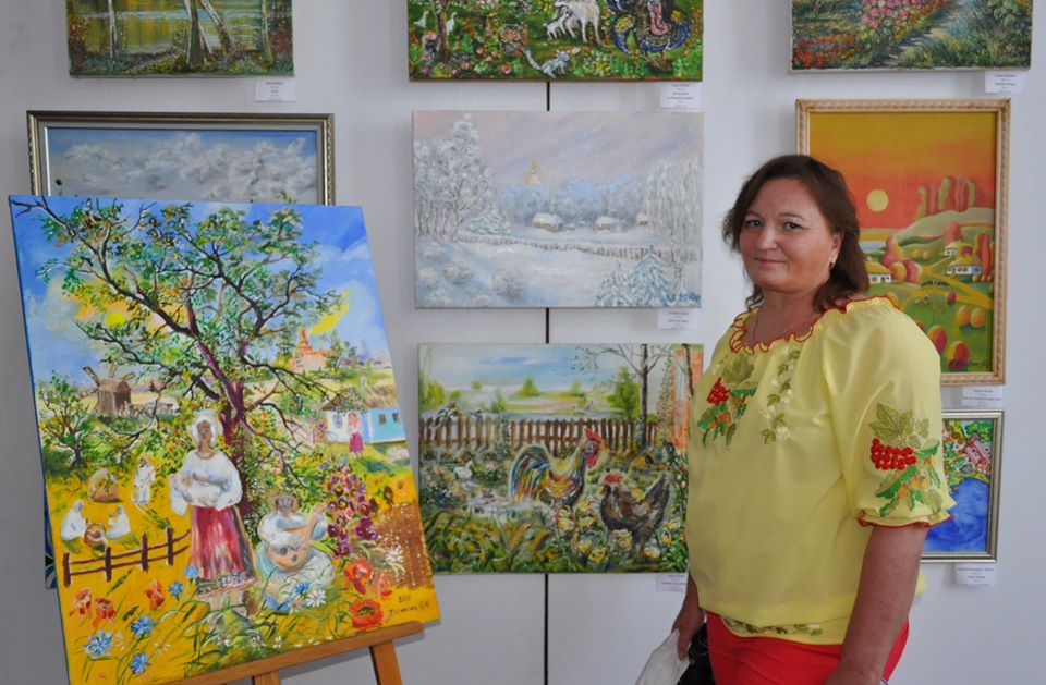 На відкриття мисткиня приїхала із Канева. Розповіла, що за фахом вона зоотехнік-селекціонер. Малювання допомагає їй відволіктись від буденних справ.